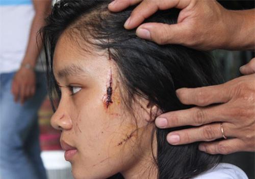 Những vết thương trên gương mặt của nữ sinh Trần Nữ Diễm Trinh.