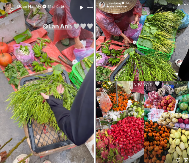 Tại quê chồng, Doãn Hải My vui vẻ đi bộ trên đường làng cùng Đoàn Văn Hậu hay cùng chị dâu chồng đi chợ sớm mua hoa quả.