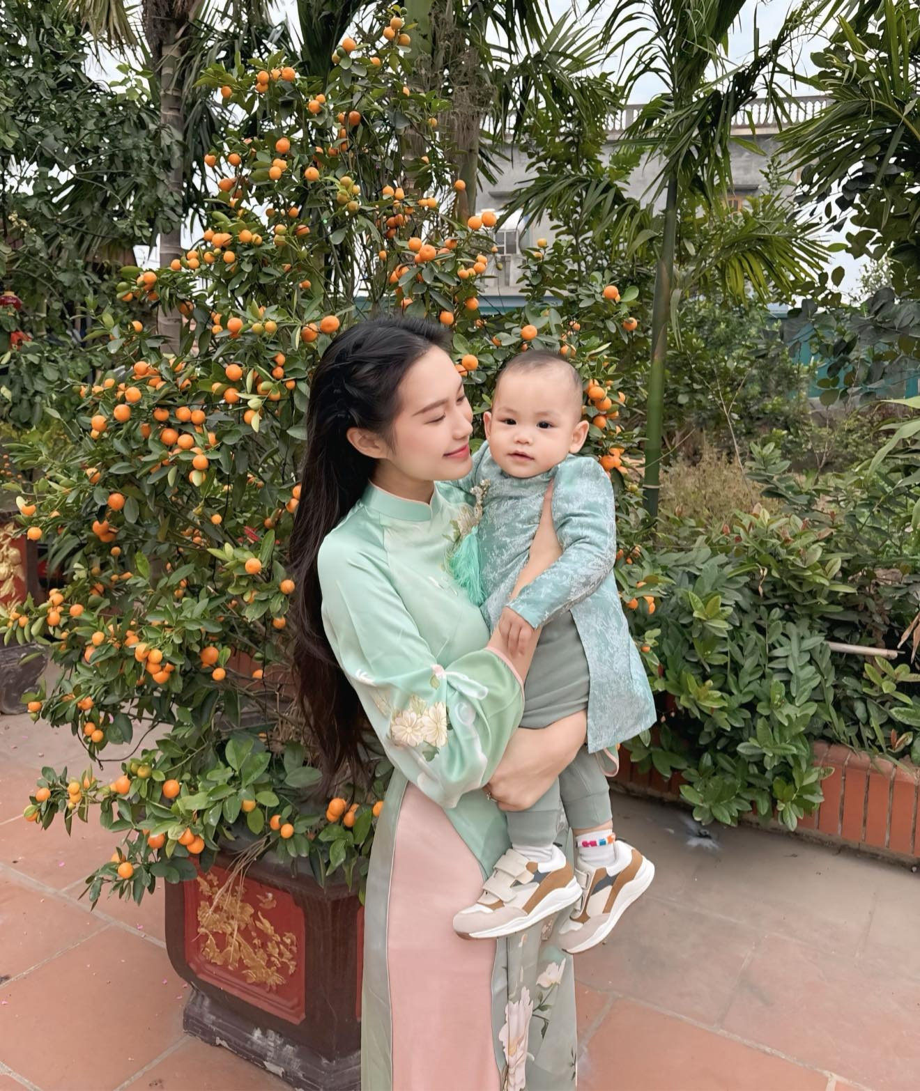 Trước đó, bà xã hậu vệ Đoàn Văn Hậu vui vẻ chia sẻ những hình ảnh đời thường cùng chồng con chơi Tết.