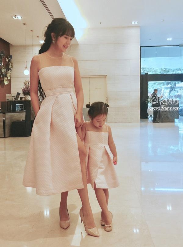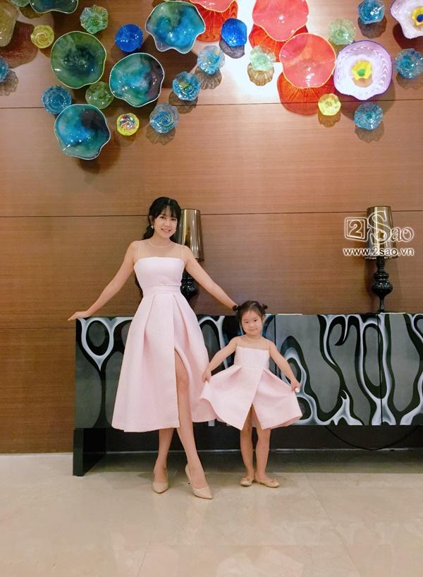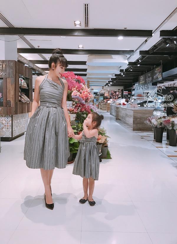 Trong mọi khuôn hình, Minh Hà và con gái Cherry luôn mặc đồ đôi rất đáng yêu