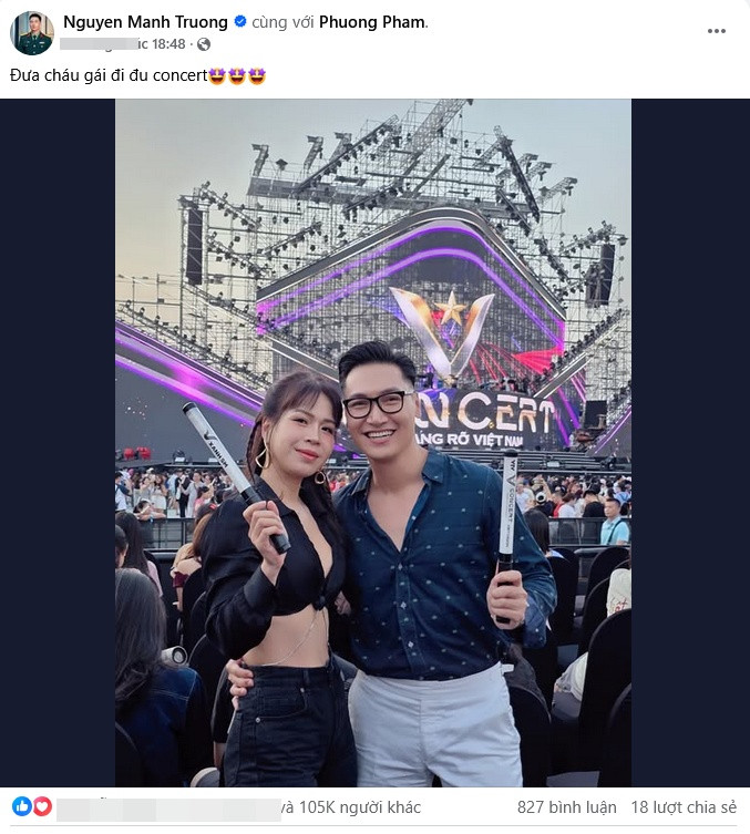 Theo đó, trên trang cá nhân, nam diễn viên cùng vợ Lan Phương check-in trước concert đình đám diễn ra ở Đông Anh, Hà Nội. Trong khung hình, nhan sắc của bà xã diễn viên Mạnh Trường gây chú ý vì quá trẻ trung.
