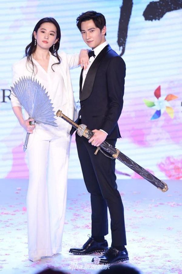 Chiều 30/3, bộ phim điện ảnh Tam sinh tam thế thập lý đào hoa tổ chức buổi họp báo tuyên truyền với sự tham gia của Lưu Diệc Phi, Dương Dương và sao nhí Bành Tử Tô. Xuất hiện trong sự kiện này, "Thần tiên tỷ tỷ" diện một cây trắng, khoe nhan sắc tinh khôi.