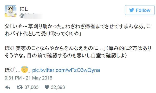 Một tài khoản twitter người Nhật đã chia sẻ câu chuyện về việc anh giúp cha mình làm công việc nhà và được cha anh đáp lại thế nào.