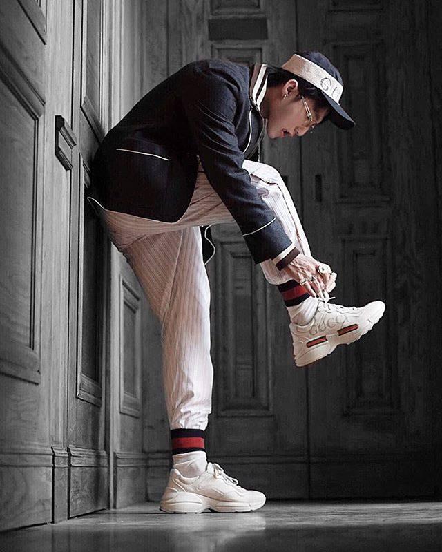 Trong bộ ảnh gần đây, Sơn Tùng tiếp tục khiến fan “đứng ngồi không yên” khi khoe bộ cánh cực chất theo phong cách old school. Nổi bật trong đó là đôi ugly shoes của Gucci và chiếc nón lưỡi trai baseball có mức giá đắt đỏ.