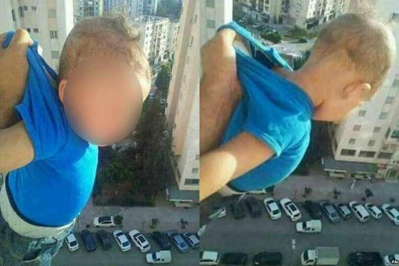 Bị cáo, cũng chính là người thân của đứa trẻ, biện minh rằng anh ta đang đứng trên một ban công có lan can bảo vệ nhưng bức ảnh đã bị các cư dân mạng chỉnh sửa lại. Cha của em bé cũng đề nghị tòa tha thứ cho người đàn ông này vì anh ta chỉ muốn trêu đùa.