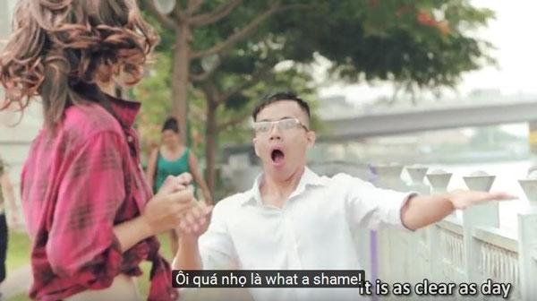 Khéo léo lồng ghép các thành ngữ khó nhớ vào bài hát giữa các câu tiếng Việt như "Bỗng chốc thấy hôm nay sao sao ở trong người,UNDER THE WEATHER..." hay "Khi bất chấp tương lai ra sao ta không màn LET THE CHIPS FALL WHERE THEY MAY. Ta mất mặt thì LOSE MY FACE. Ta cứ việc BLOW HER AWAY. Có nghĩa là làm ngạc nhiên cô ấy..."