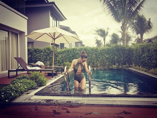 Thân hình có chút mảnh khảnh nhưng cũng không làm khó được chân dài, cách lựa chọn áo tắm vừa vặn, phù hợp với vóc dáng... tôn lên thế mạnh về hình thể cho Đàm Thu Trang.