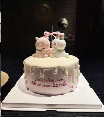 Dù không tiết lộ người bạn đi cùng là ai, thế nhưng qua nội dung trên chiếc bánh, cư dân mạng chắc nịch đây là buổi tiệc HIEUTHUHAI chúc mừng sinh nhật bạn gái. Bởi lẽ, trên chiếc bánh kem có hình hai chú lợn và thỏ đáng yêu kèm dòng chữ "Chúc mừng sinh nhật em iu 22 tuổi".