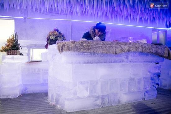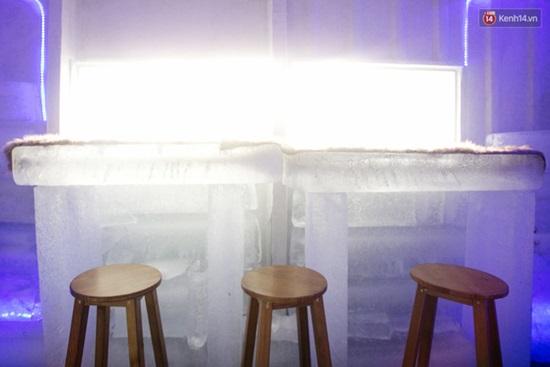 Quầy bar của quán cũng được làm từ những tảng băng xếp chồng lên nhau.