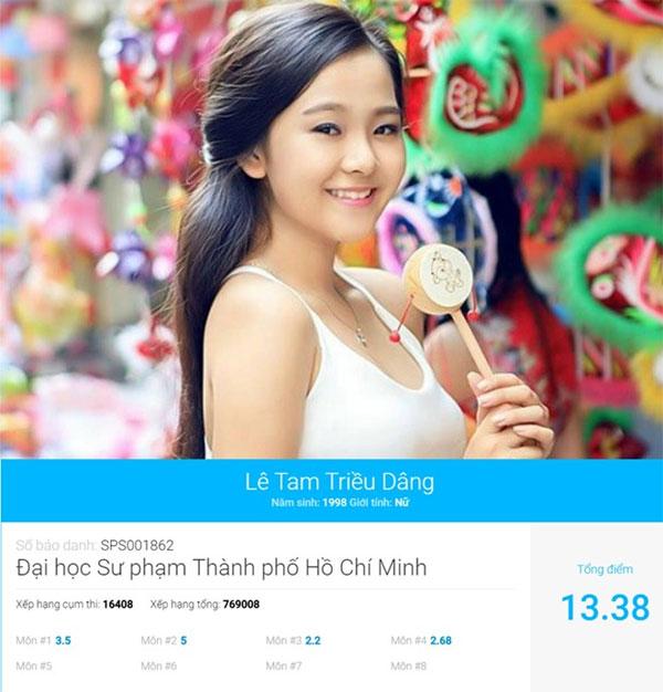 Dù trước đó Triều Dâng có chia sẻ hơn một năm qua mình tạm dừng các hoạt động nghệ thuật để tập trung cho việc học tập và kì thi hết cấp nhưng nữ sinh THPT Vạn Hạnh vẫn không đạt được kết quả như mong muốn. Cụ thể điểm thi của Triều Dâng môn Toán: 3,5; Hóa học: 2,2; Ngữ Văn: 5; Tiếng Anh: 2,68.
