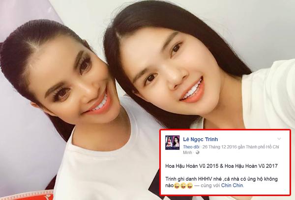 Cụ thể, trong một bức ảnh selfie cùng Phạm Hương vào cuối năm 2016, Lê Ngọc Trinh tự tin viết "Hoa hậu Hoàn vũ 2015 và Hoa hậu Hoàn vũ 2017", đồng thời thông báo cô sẽ chính thức ghi danh.