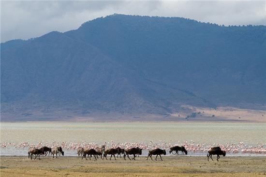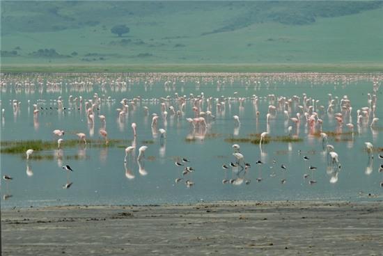 Hồ Magadi còn nổi tiếng với loài chim hồng hạc.