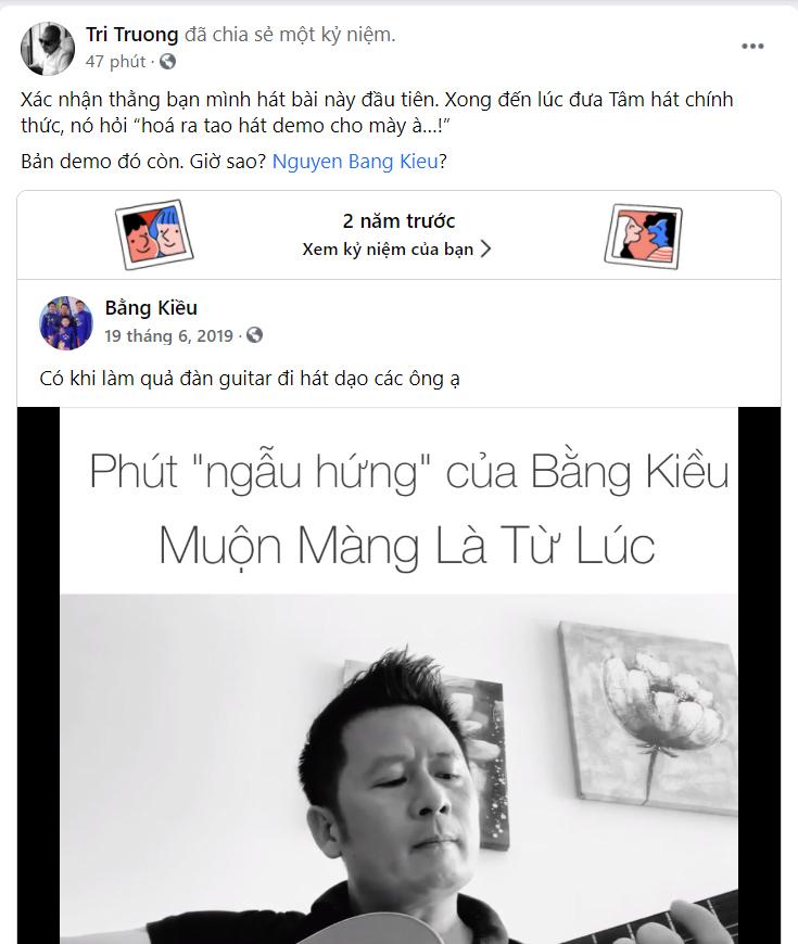 Mới đây, nhạc sĩ Đức Trí bất ngờ chia sẻ lại đoạn clip Bằng Kiều cover lại ca khúc Muộn Màng Là Từ Lúc của Mỹ Tâm. Bên cạnh đó, anh cũng lần đầu hé lộ rằng nam ca sĩ từng hát demo cho ca khúc này.