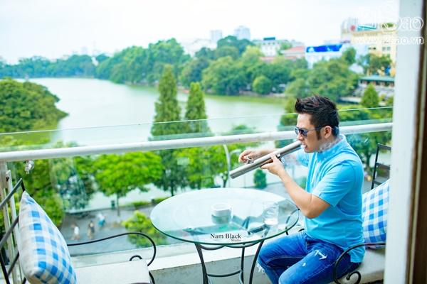 Mặc bảnh bao, Bằng Kiều vẫn giữ thói quen rất "vỉa hè" như cũ: hút thuốc lào.
