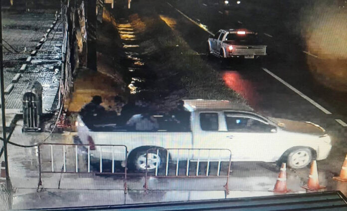 Cảnh sát điều tra đã phát hiện hai xe bán tải nghi là phương tiện gây án, bị bỏ lại trong đồn điền cọ dầu cách biên giới Thái Lan - Malaysia khoảng 1 km.