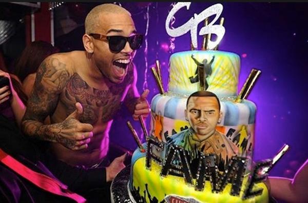 Nam ca sĩ cool ngầu Chris Brown cũng có lúc phấn khích như đứa trẻ khi nhận chiếc bánh sinh nhật đáng yêu có gương mặt mình trên đó.