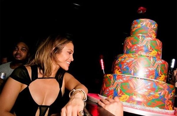 Jennifer Lopez bên chiếc bánh đầy màu sắc cùng họa tiết lạ mắt trong sinh nhật lần thứ 46.