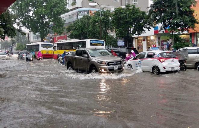 Nhiều tuyến phố Hà Nội ngập chìm trong biển nước.