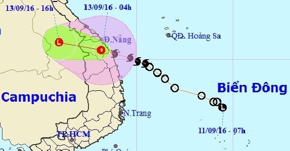 Hồi 4h ngày 13/9, vị trí tâm áp thấp nhiệt đới ở trên đất liền các tỉnh Quảng Nam-Quảng Ngãi. Sức gió mạnh nhất ở vùng gần tâm áp thấp nhiệt đới mạnh cấp 7 (50-60 km/h), giật cấp 8-9.