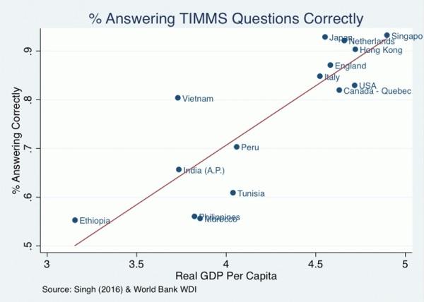 Năm 2014, nhà nghiên cứu Abhijeet Singh đến từ Đại học College London công bố nghiên cứu của ông về TIMMS và nhận ra rằng giáo dục Việt Nam tạo ra sự vượt trội từ sớm. Khi mới vào cấp 1, trẻ em Việt Nam có trình độ chỉ ngang ngửa các nước khác. Tuy nhiên, sau một thời gian, sự chênh lệch về trình độ càng ngày càng rõ rệt.