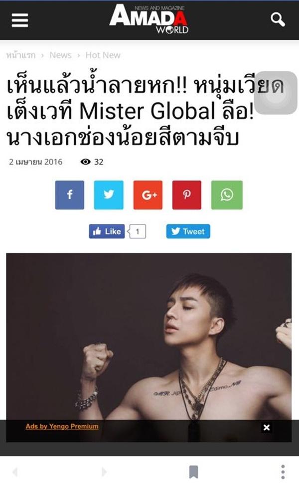 Trước khi đến với cuộc thi Mister Global 2016, JiPi đã khiến cư dân mạng Thái Lan “sốt xình xịch” với vẻ đẹp hoàn hảo khi anh chàng lưu lại đây casting cho một dự án điện ảnh. Anh cũng đang có ý định tấn công làng giải trí Thái Lan sau khi kết thúc cuộc thi. Mister Global sẽ diễn ra vào cuối tháng 4/2016, hiện chàng trai sinh năm 1993 đang tích cực luyện tập thể lực, trang phục và tài năng để chuẩn bị tốt cho cuộc thi.