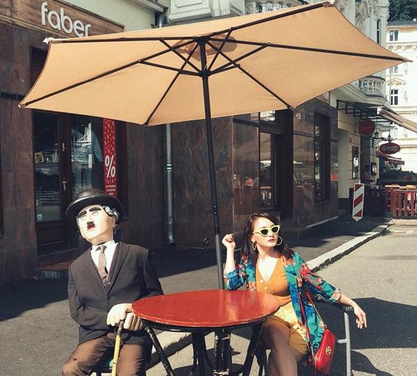 Trong chuyến công tác châu Âu gần đây, nữ diễn viên Ngày ấy mình đã yêu cập nhật nhiều hình ảnh tạo dáng "sang chảnh".