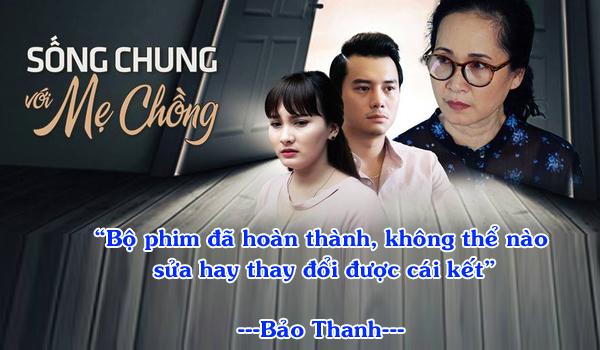 Sau những lời hào hứng bộc bạch về cuộc sống và mối quan hệ tốt đẹp trong tổ ấm gia đình, Bảo Thanh hồi đáp mọi thắc mắc xoay quanh cái kết của bộ phim Sống chung với mẹ chồng. Nữ diễn viên chính khẳng định: "Bộ phim đã quay xong, dù mọi người có thích hay không thì cũng hoàn thành rồi, không thể sửa hay thay đổi gì được nữa".