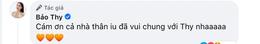 Lần này, thay vì im lặng và tung những bức ảnh photoshop kĩ càng hơn thì Bảo Thy lại ngầm khẳng định chuyện mang thai con đầu lòng với một động thái: "Cám ơn cả nhà thân iu đã vui chung với Thy nha."