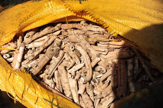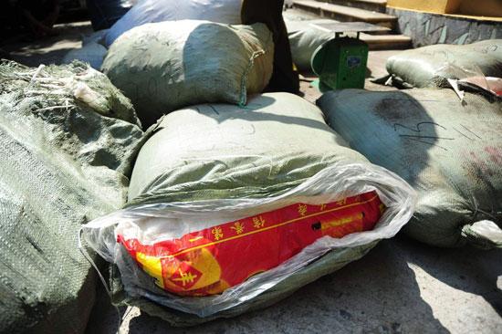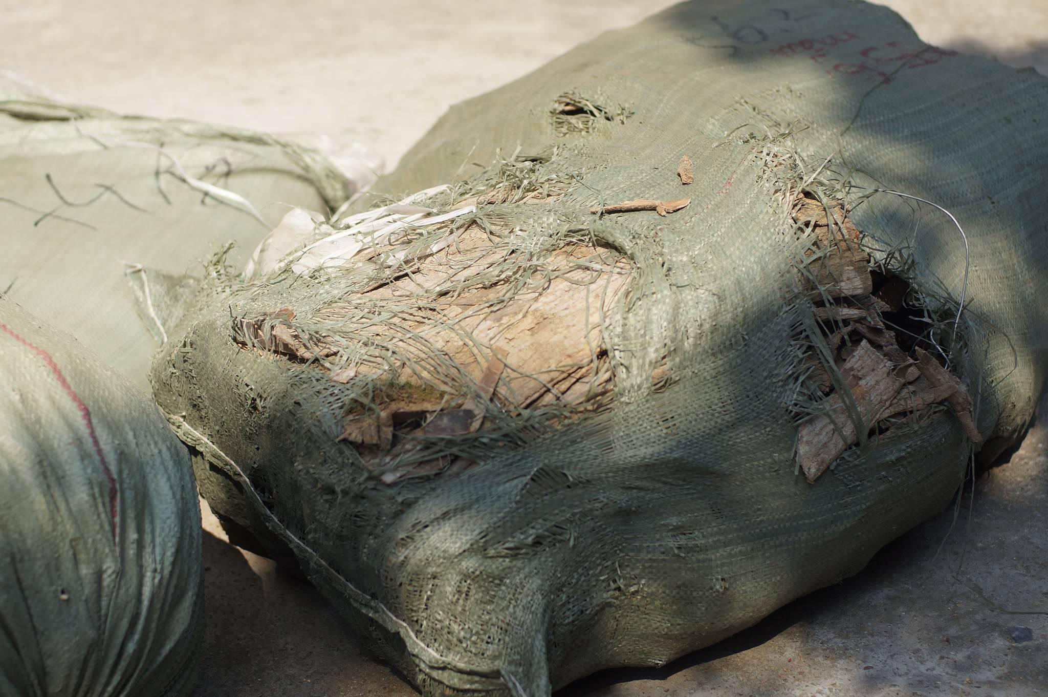 Những bao tải chứa nguyên liệu thuốc Đông y có xuất xứ từ Trung Quốc bị thu giữ