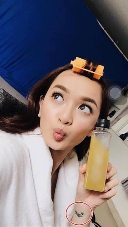 Hot girl mới tậu thêm hình xăm bằng chữ ngay phía dưới cánh tay trái.