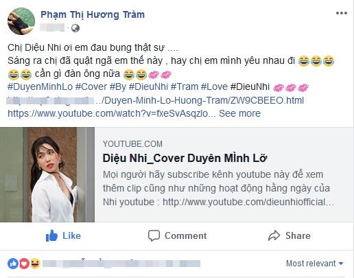 Vẫn với phong cách lầy lội quen thuộc, Diệu Nhi khiến người xem cười quặn ruột với bản cover có một không hai của mình. Nữ diễn viên chia sẻ: "Thể theo lời yêu cầu của khán giả, bé Hương Tràm cũng rất yêu mến giọng hát của Diệu Nhi và mời Diệu Nhi hát bài này nên bây giờ Diệu Nhi sẽ hát nha".