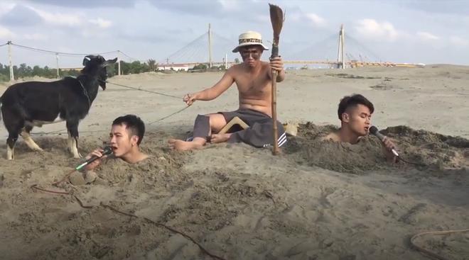 Thay vì quay các clip dễ thương hay ngồi trong phòng thu, bộ 3 hài hước đã quyết định rủ nhau ra một bãi cát, đào hố để thực hiện Cô gái M52 phiên bản đắp mộ cuộc tình.