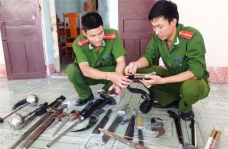 Khám xét khẩn cấp nơi ở của đối tượng, lực lượng Công an thu giữ thêm: 1 nỏ bắn tên, 3 mũi tên bằng kim loại, 4 kiếm, 2 dao găm, 2 dao quắm, 2 chùy tay, 15 viên đạn các loại.