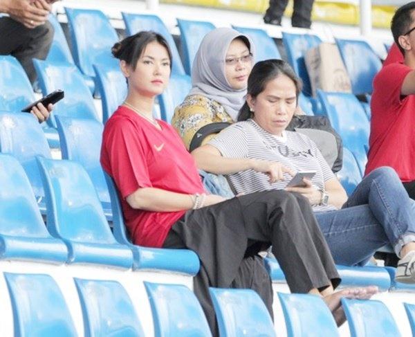 Maria Ozawa trên khán đài SVĐ Rizal Memorial xem đấu bóng.