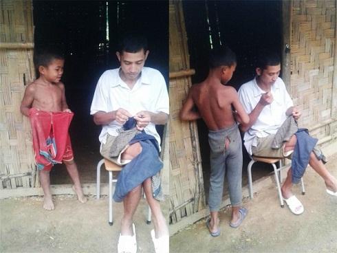 Nó vào lớp 4 để ngồi cùng mấy đứa cùng bản nó. Đích thân tôi dẫn đi may cho nó 4 bộ quần áo, nhưng khó nhất là không có một đôi dép nào vừa chân nó cả, tôi phải dùng miếng xốp cắt vừa bàn chân và thiết kế ngay một đôi dép, nhưng cũng chỉ đi được vài ngày.