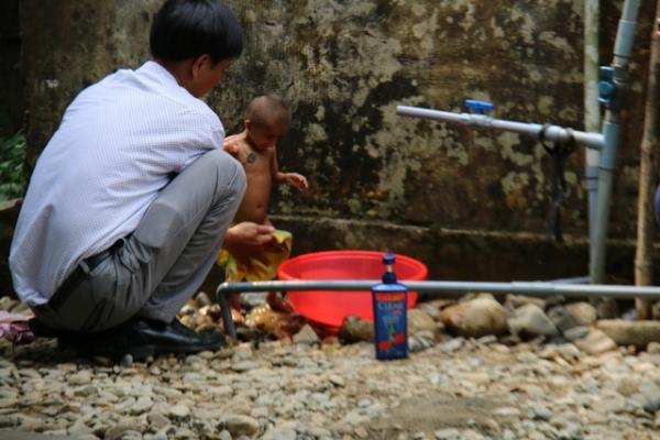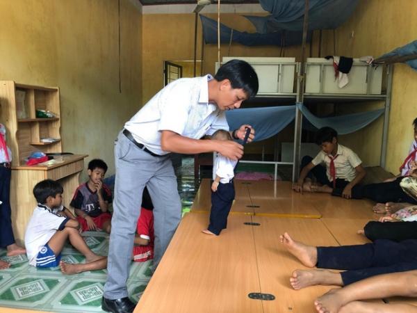 Thầy Cương chăm sóc K’Rể như tình yêu của người cha dành cho con.