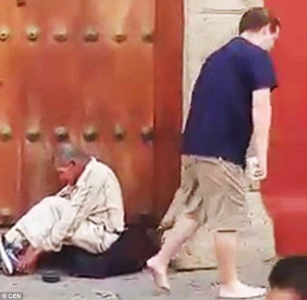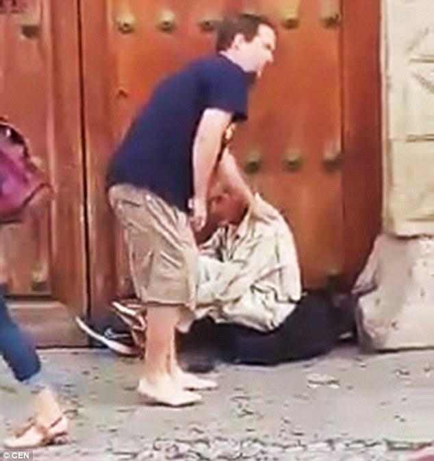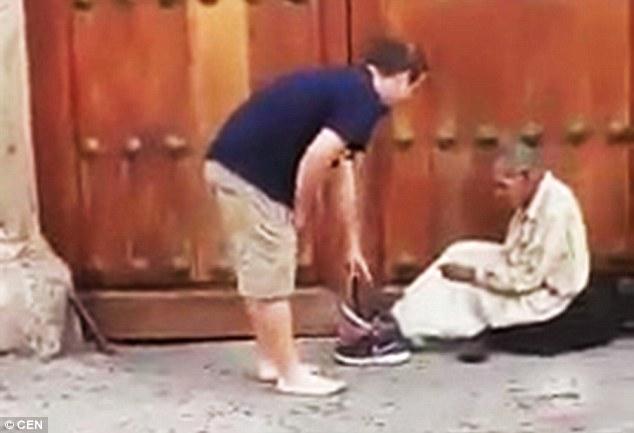 Trong khi người đàn ông vô gia cư xỏ giày, vị khách du lịch đã bước đi ngay lập tức.