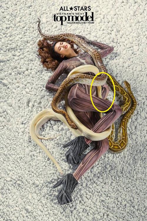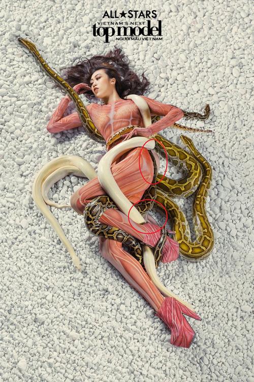 Mới đây, bộ ảnh chụp cùng trăn của dàn mẫu Next Top đã bị "bóc" vì có những phần photoshop bị lố và quá ẩu.
