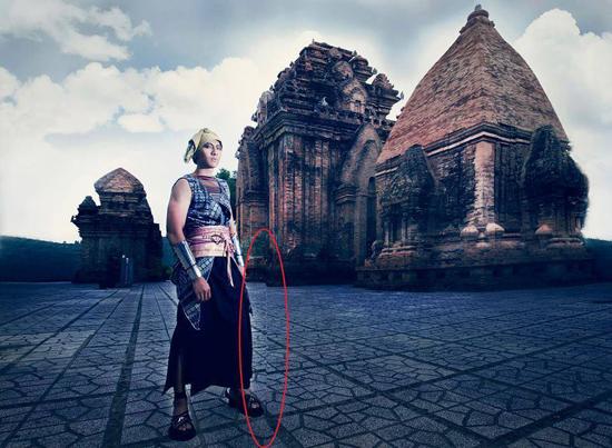 Bức ảnh được photoshop quá lộ liễu khi để sàn đất lồi lõm.