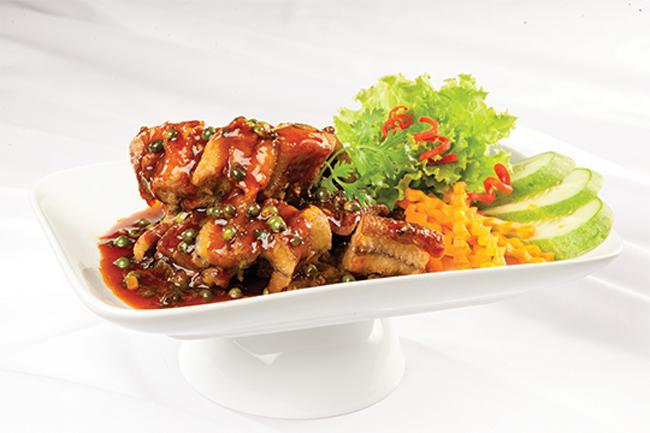 Lươn chiên giòn sốt tiêu xanh