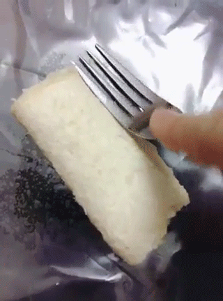 - Dùng nĩa cán dẹt phần rìa bánh để mép bánh dễ dính lại với nhau, có thể phết thêm chút nước để bánh được dính chặt hơn, hở 1 cạnh của miếng bánh để bơm nhân vào, cuối cùng cán nốt phần mép còn lại, bọc bánh bằng màn bọc sau đó bảo quản trong tủ lạnh ăn dần.