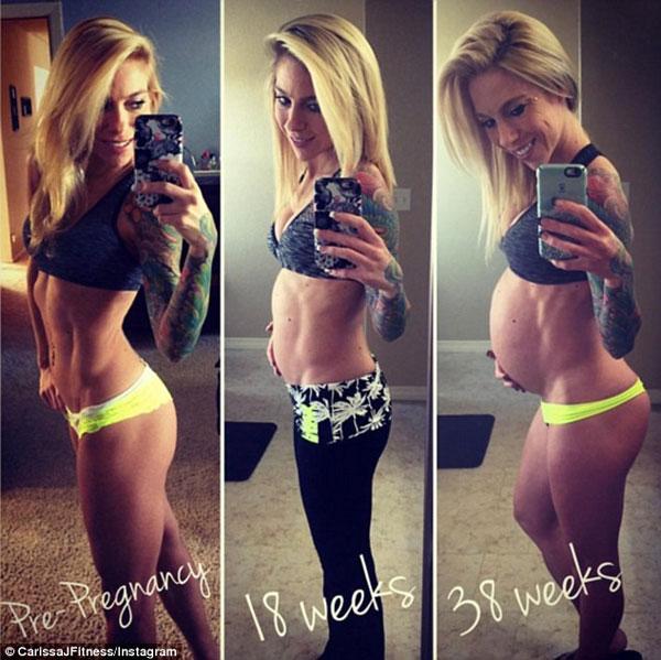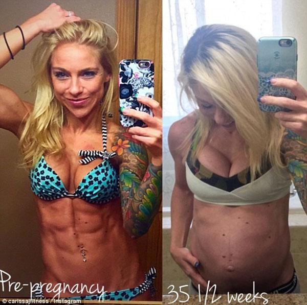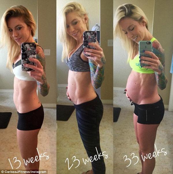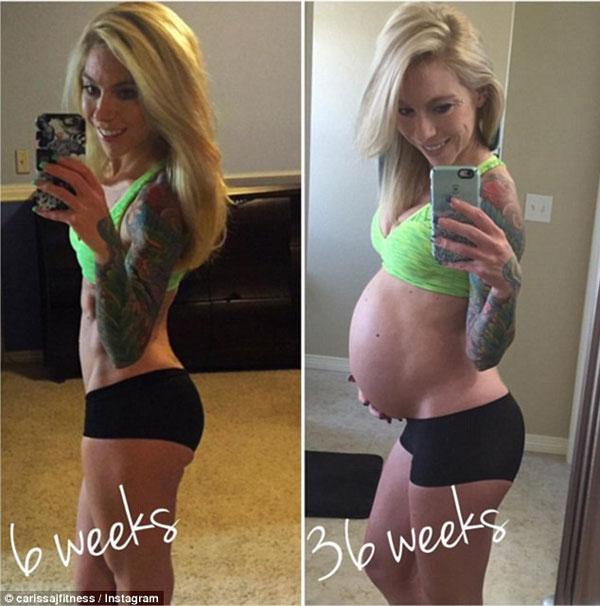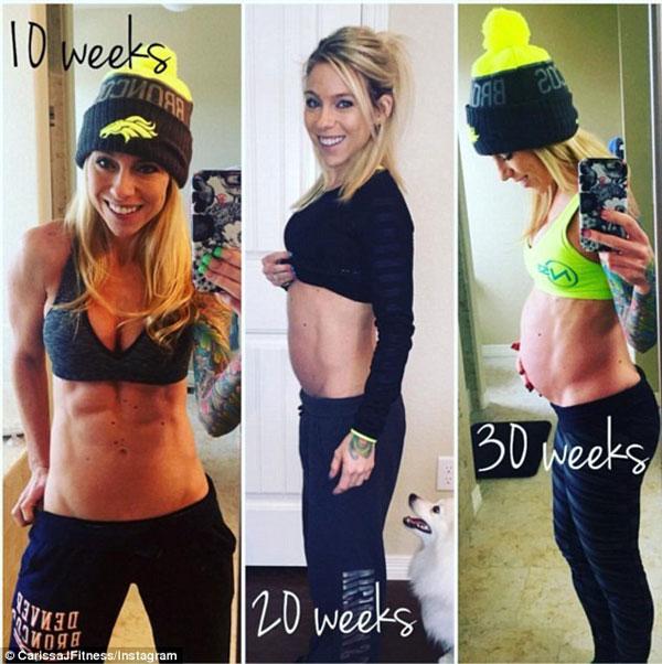Ở tuần thứ 10 và 20 của thai kì, múi bụng của cô vẫn hiện rõ. Sang đến tuần thứ 30, nó mới bắt đầu có dấu hiệu mờ đi. Đa số những người theo dõi cô trên Instagram vẫn bày tỏ sự ngưỡng mộ với thân hình vô cùng săn chắc này: "Chị trông thật tuyệt vời! Chị thật sự là một thần tượng đấy!’’, "Chị trông quá đỗi xinh muốn đẹp trong từng tấm hình. Chị đã truyền cảm hứng cho tất cả các bà bầu động lực tập luyện để có một thai kỳ khỏe mạnh’’.