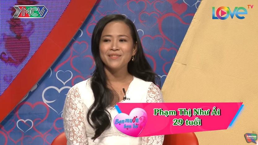 Ái tâm sự mình rất nghiêm túc và lên chương trình với mong muốn tìm được người có vẻ bề ngoài ưa nhìn, có khuôn mặt hiền lành, phúc hậu, biết chia sẻ quan tâm gia đình và không cục cằn nóng tính. Vũ tự tin mình có thể đáp ứng được hầu hết yêu cầu của Ái.