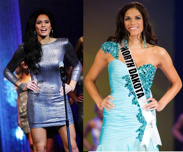 Audra Mari (váy xanh) từng là Á hậu 1 của cuộc thi Hoa hậu Hoàn vũ Mỹ 2014. Người