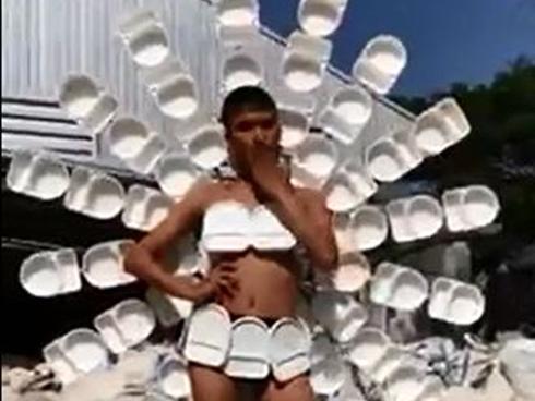 Không lâu sao đó, "nhà thiết kế" người Thái tiếp tục khiến người xem mãn nhãn khi có màn trình diễn thời trang bằng vỏ lon, hộp cơm, các loại nhựa,... Chỉ sau vài giờ đăng tải trên một fanpage có tiếng của Việt Nam, những hình ảnh này nhanh chóng thu hút hàng trăm nghìn lượt xem, gần 10 nghìn lượt thích, chia sẻ và bình luận.
