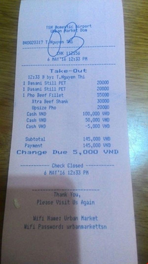 Mới đây, một vị khách đã nếm trái đắng khi phải trả tới 105.000 cho một bát phở tại sân bay Tân Sơn Nhất. Cụ thể, khách hàng này đã phải móc ví trả một số tiền “không tưởng” đối với một bát phở. Theo hóa đơn, một tô phở thập cẩm tại tiệm phở này có giá 105.000 đồng, trong đó bao gồm 55.000 phở trẻ con + 30.000 thịt mềm + 20.000 phở người lớn.
