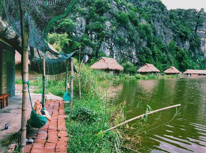 Nhà ở Ninh Binh Valley cũng rất đặc biệt, không phải là những căn nhà xây dựng bằng gạch đá quen thuộc mà là những căn chòi lợp lá tranh giữa không gian một bên là núi non, một bên là sông nước. Sẽ thật tuyệt vời nếu như ngày cuối tuần thảnh thơi, bạn tự thưởng cho mình một chuyến đi "ở ẩn" đến Ninh Binh Valley để tận hưởng thiên nhiên sau môt tuần làm việc căng thẳng.