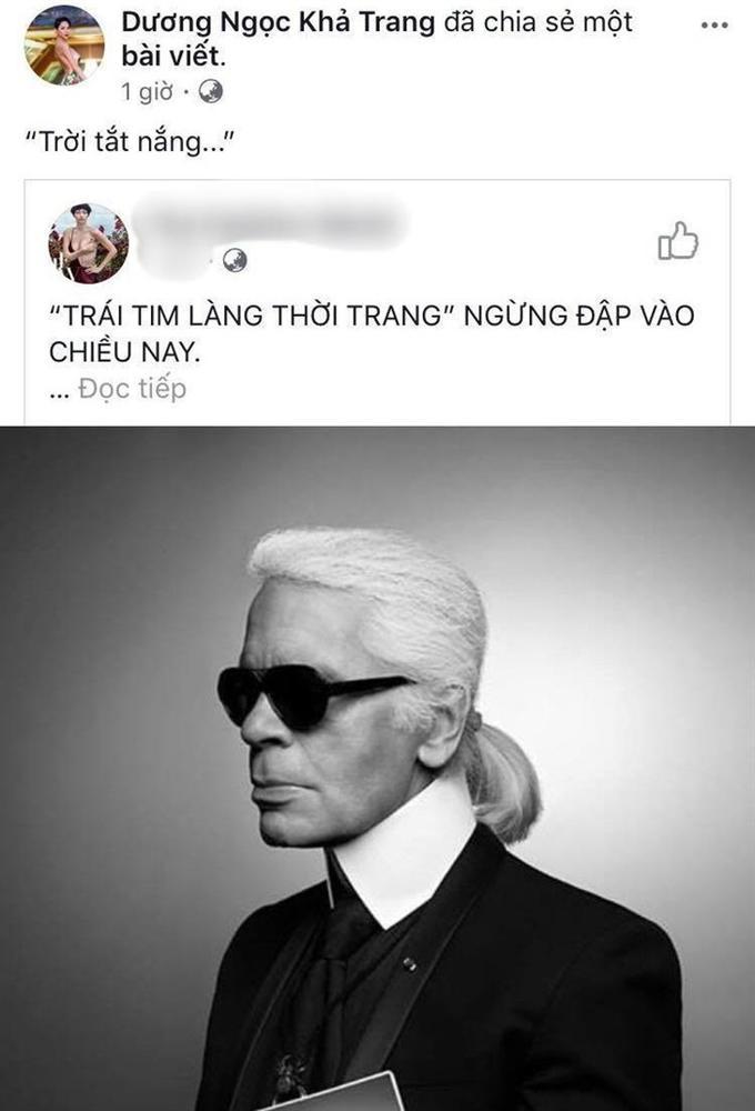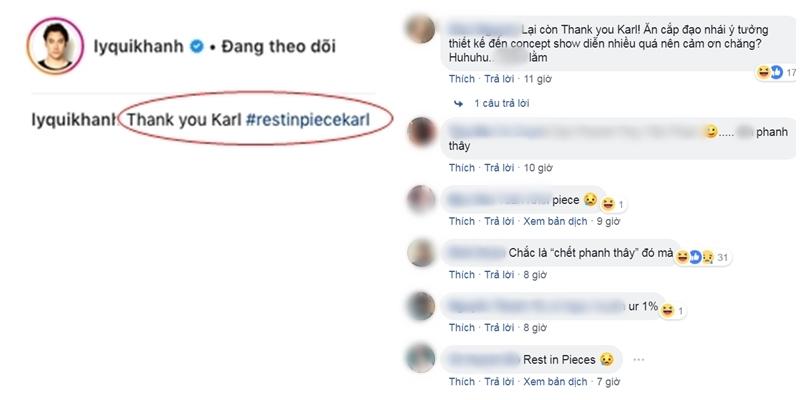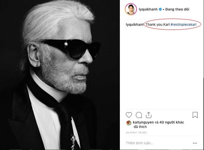 Lý Quí Khánh là một trong số những NTK Việt Nam đầu tiên chia sẻ sự tiếc thương với sự ra đi của "ông hoàng Chanel" nhưng rất tiếc lại sai chính tả. Thay vì Rest in peace (an nghỉ), anh lại viết thành Rest in piece.