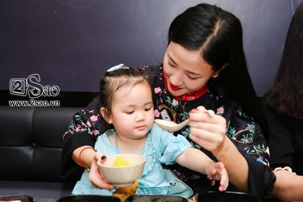 Dù bận rộn tiếp khách, Maya vẫn không quên chăm sóc bé Bồ Câu