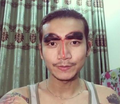Kiểu chân mày tiếp theo là chân mày lá tre, có thể kết hợp thêm với ống tre ở sống mũi... và anh chàng còn đặc biệt nhấn mạnh "ai rảnh có thể ngồi vẽ trăm đốt luôn".